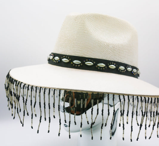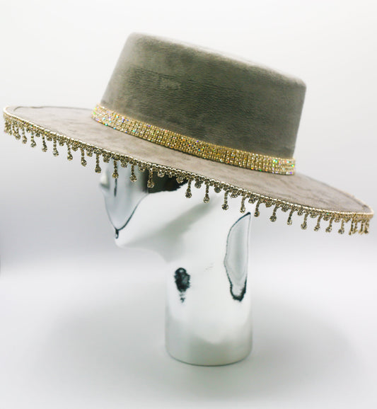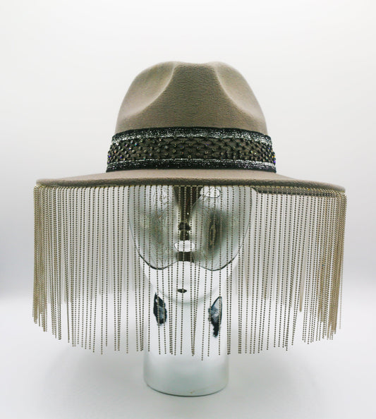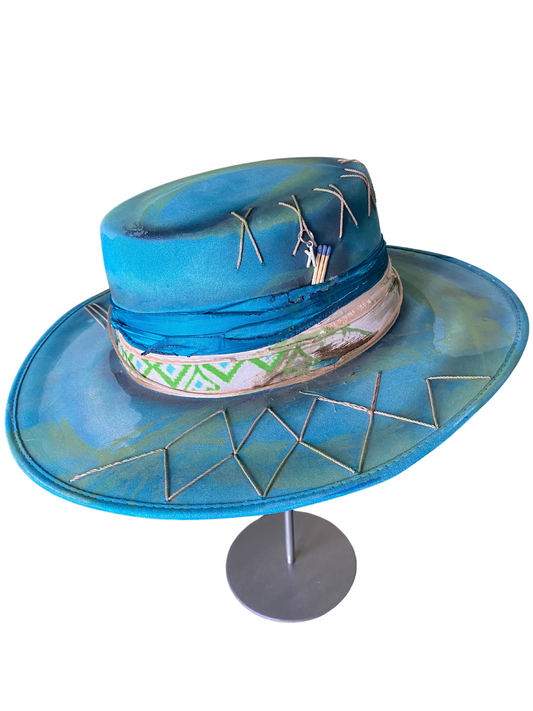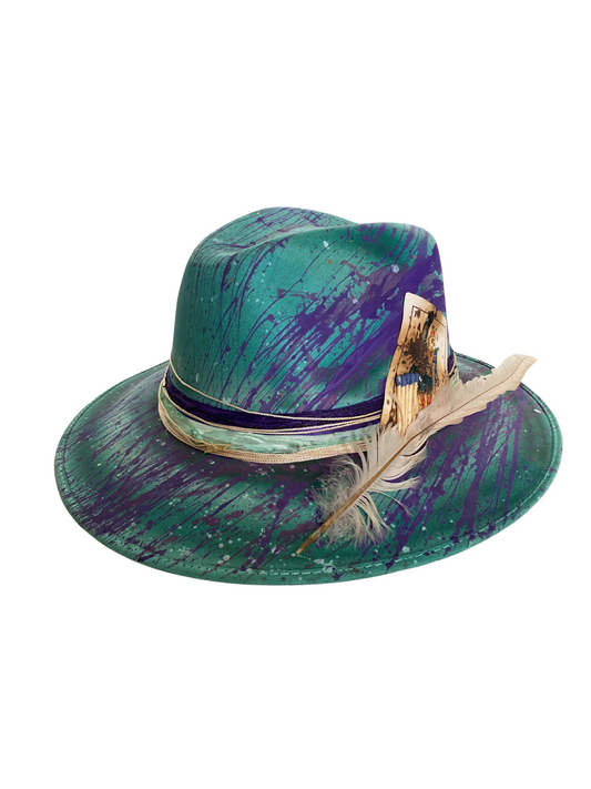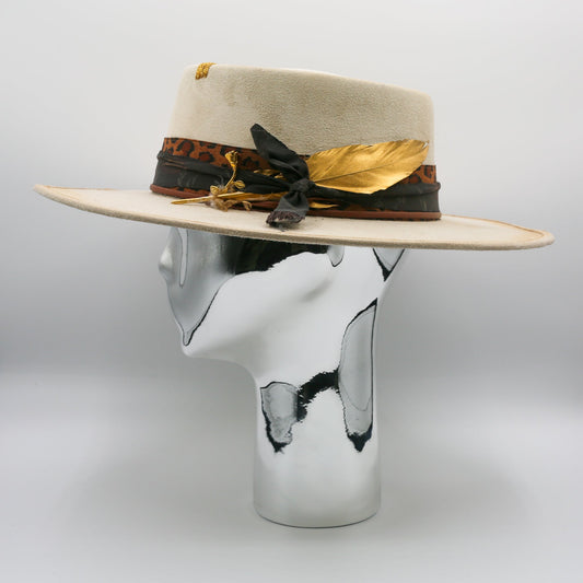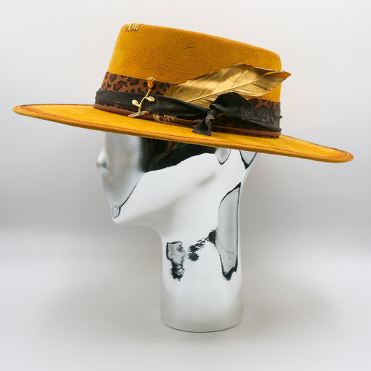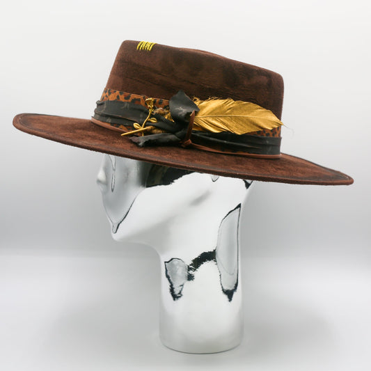Rose and Gold Feather Wide Brim Hat - Burnt Orange