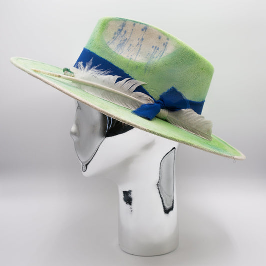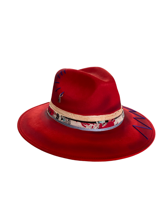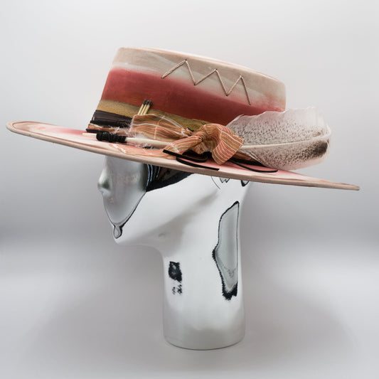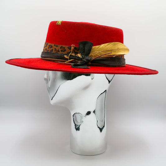 Rose and Gold Feather Wide Brim Hat - Scarlet