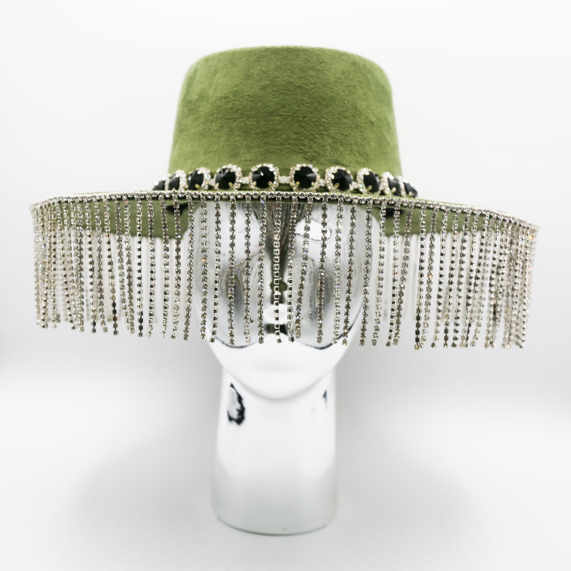Embrace your inner fashionista and let the crystal fringe catch the light as you strut with confidence and grace. Perfect for special occasions, glamorous events, or whenever you want to add a touch of sparkle to your everyday style, this hat is an extraordinary accessory that exudes sophistication and glamour in every way.