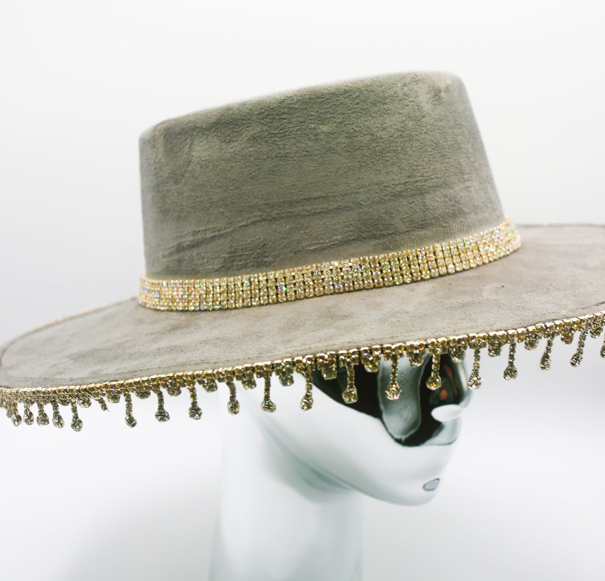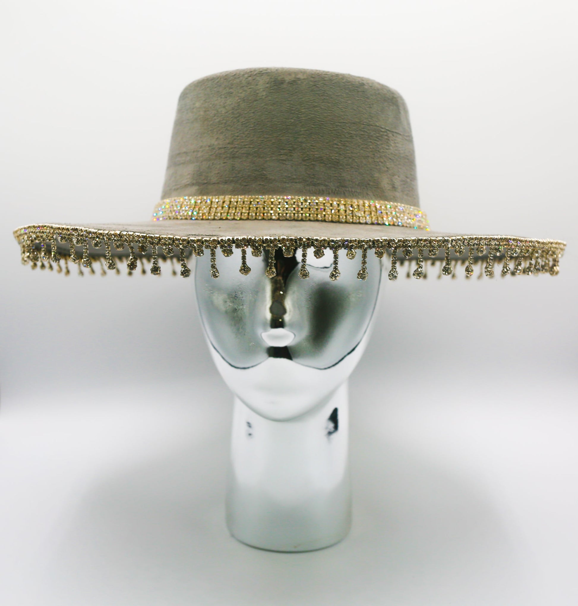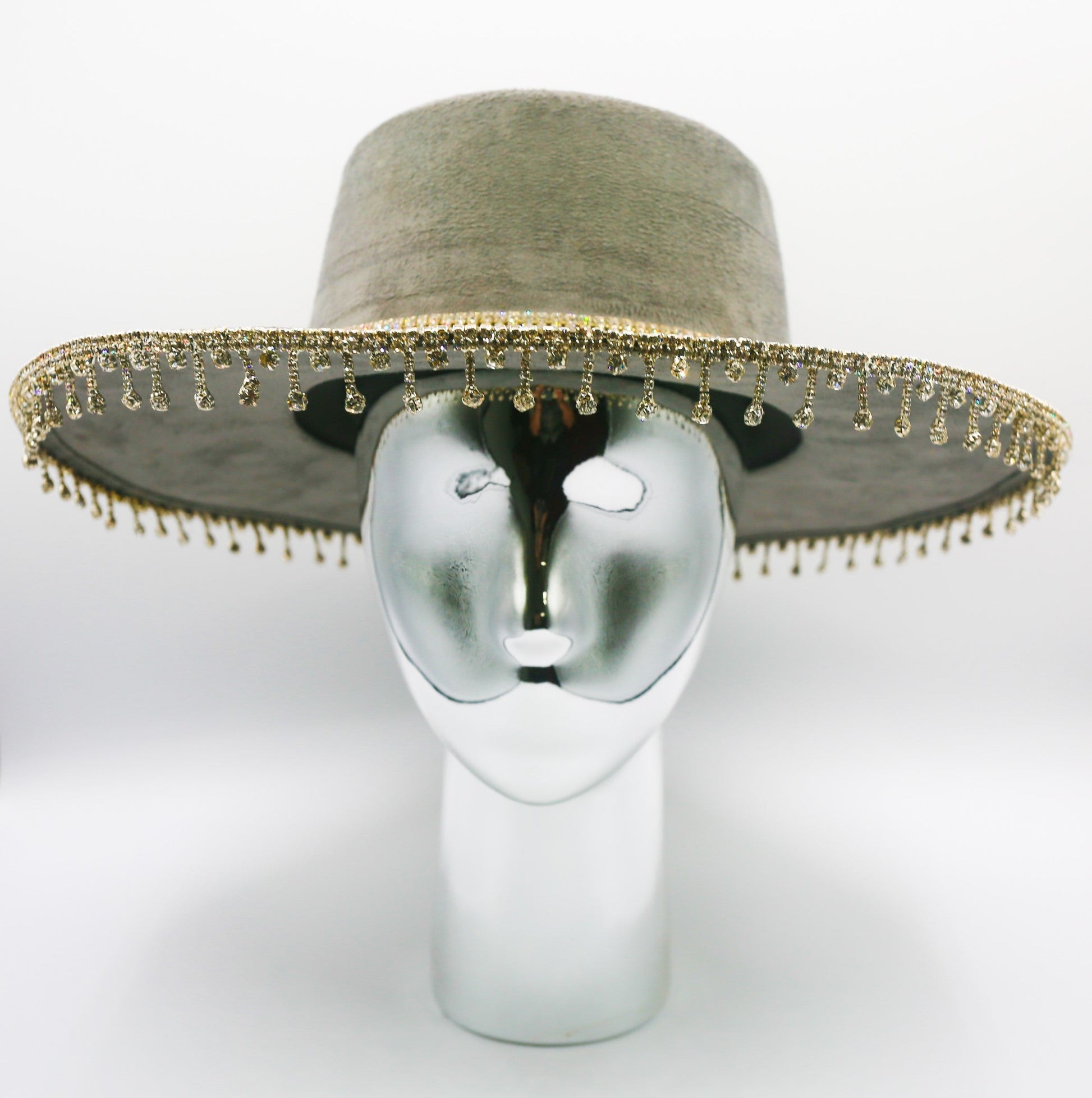 Make a statement with the Atousa G Turin hat. Crafted from 100% suede and hand embellished with crystals for a luxurious look and legendary style. Timeless taste with a modern twist, a perfect addition to any outfit.