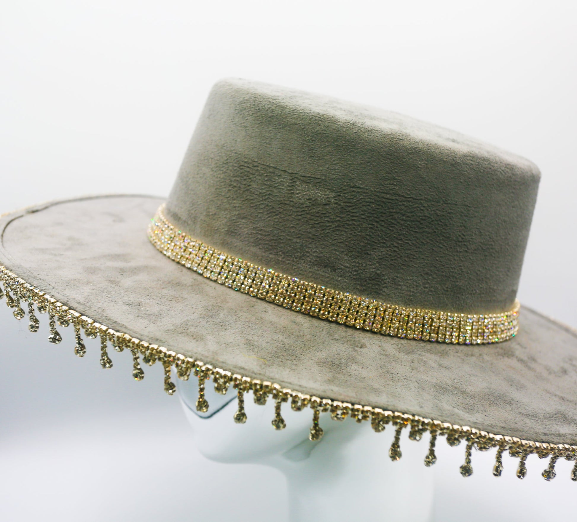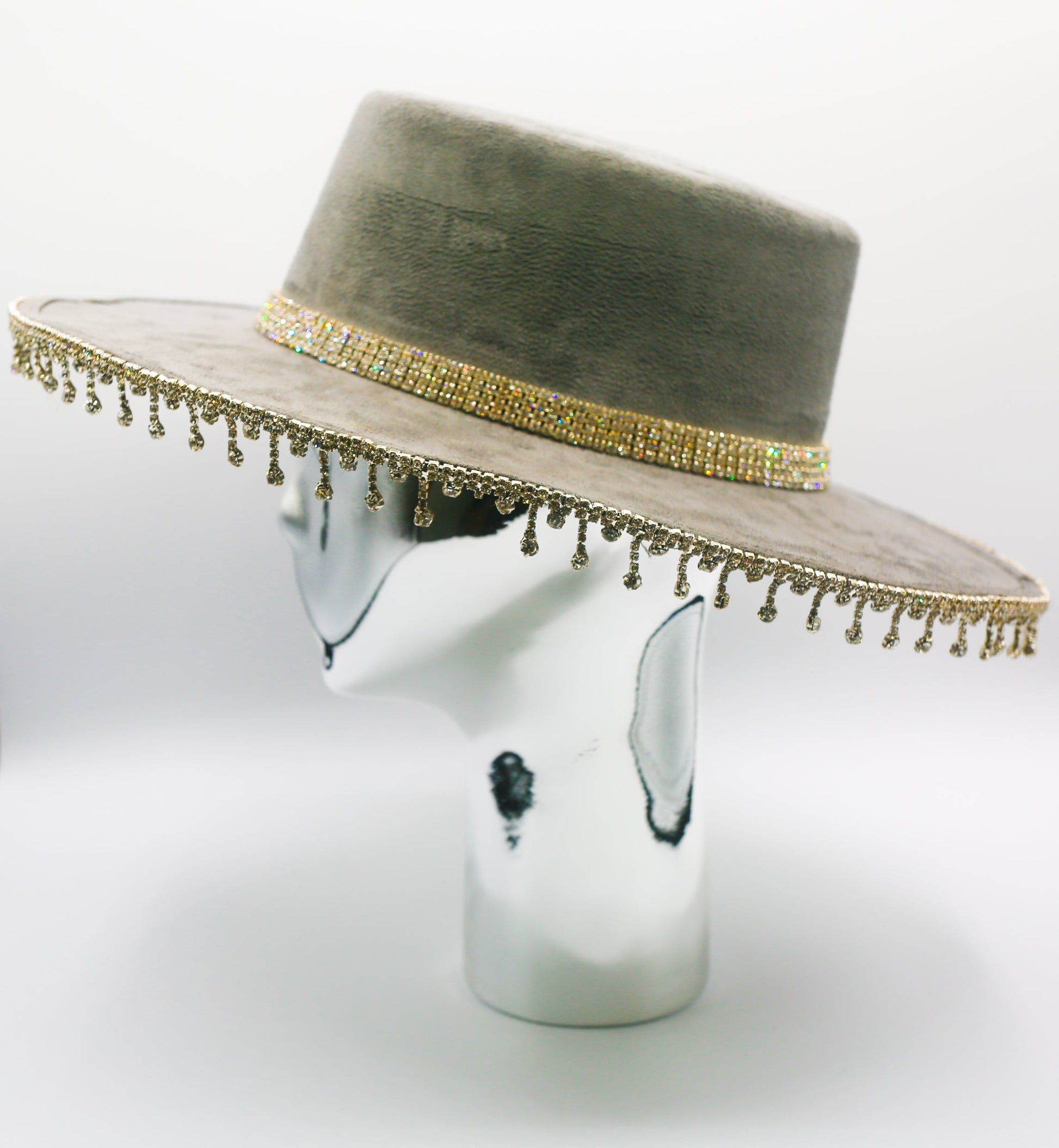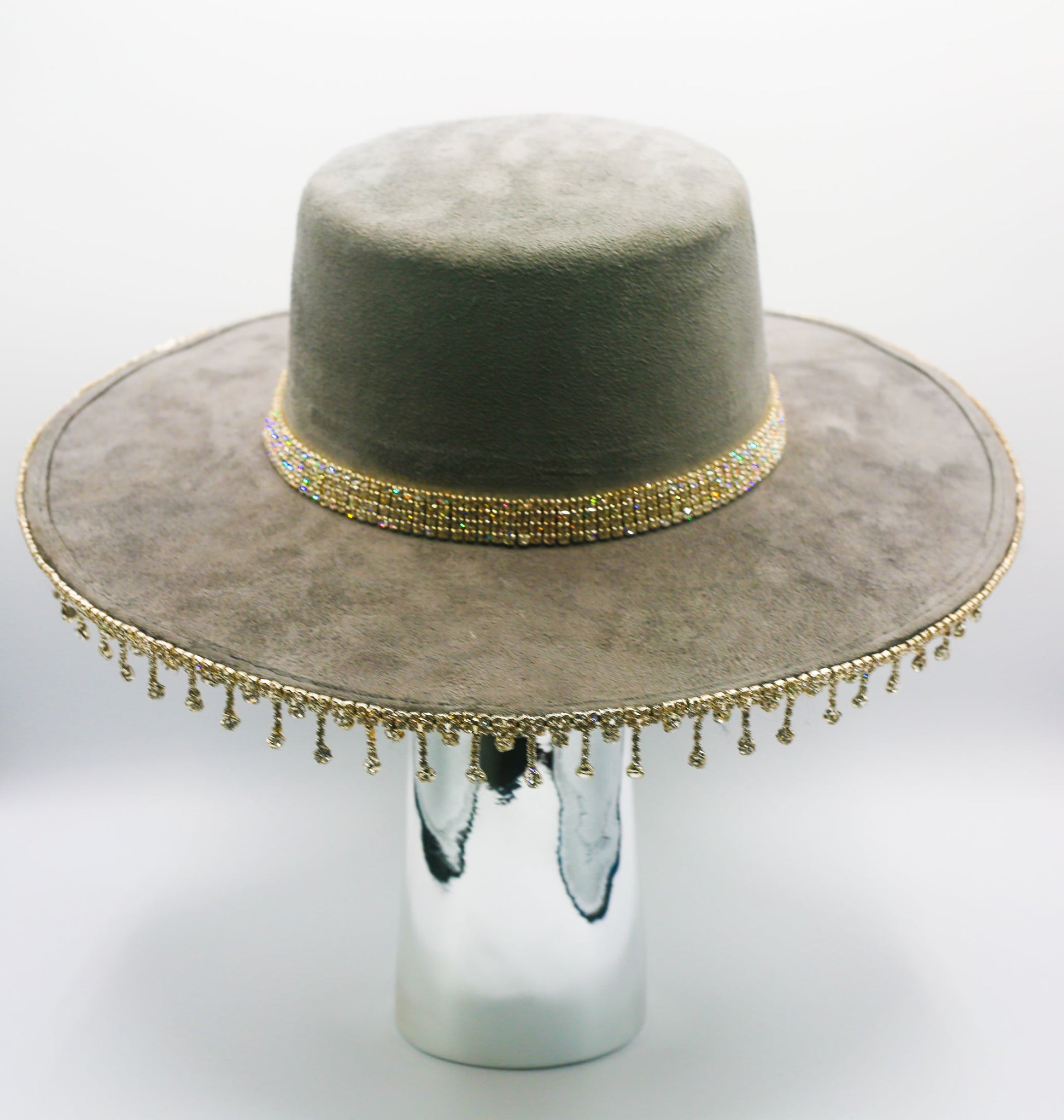 Make a statement with the Atousa G Turin hat. Crafted from 100% suede and hand embellished with crystals for a luxurious look and legendary style. Timeless taste with a modern twist, a perfect addition to any outfit.