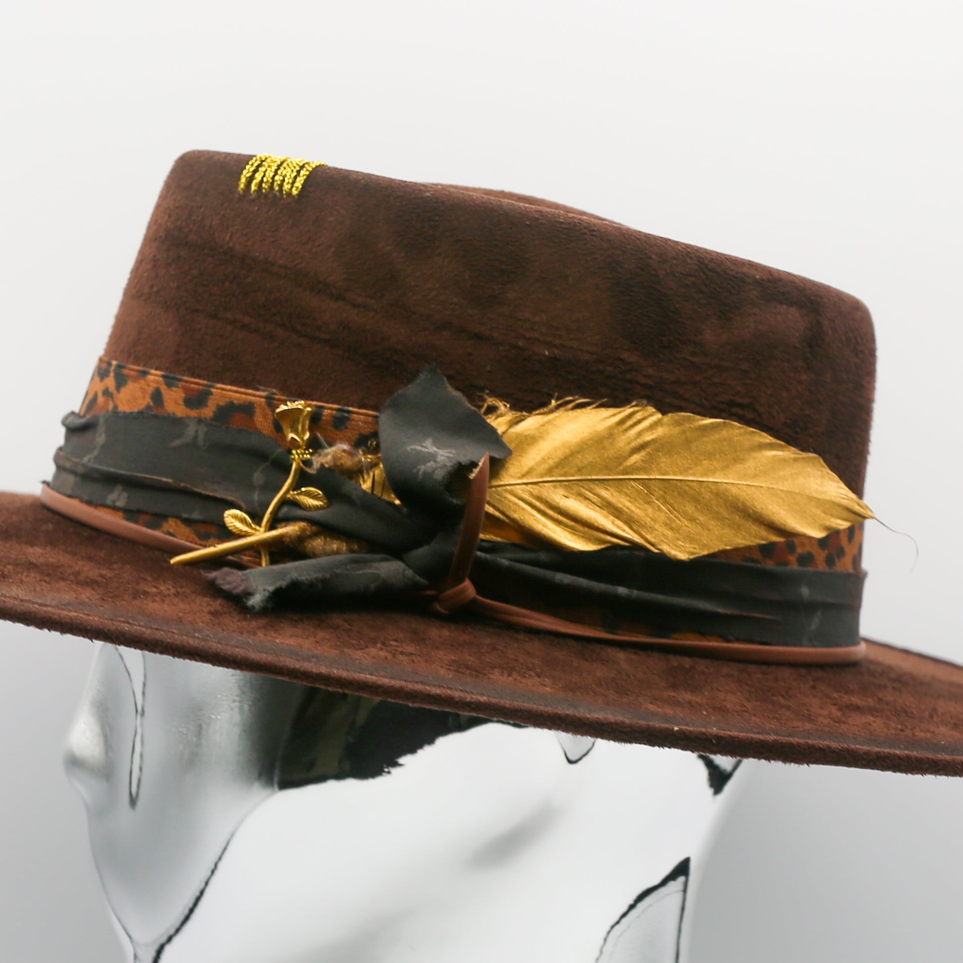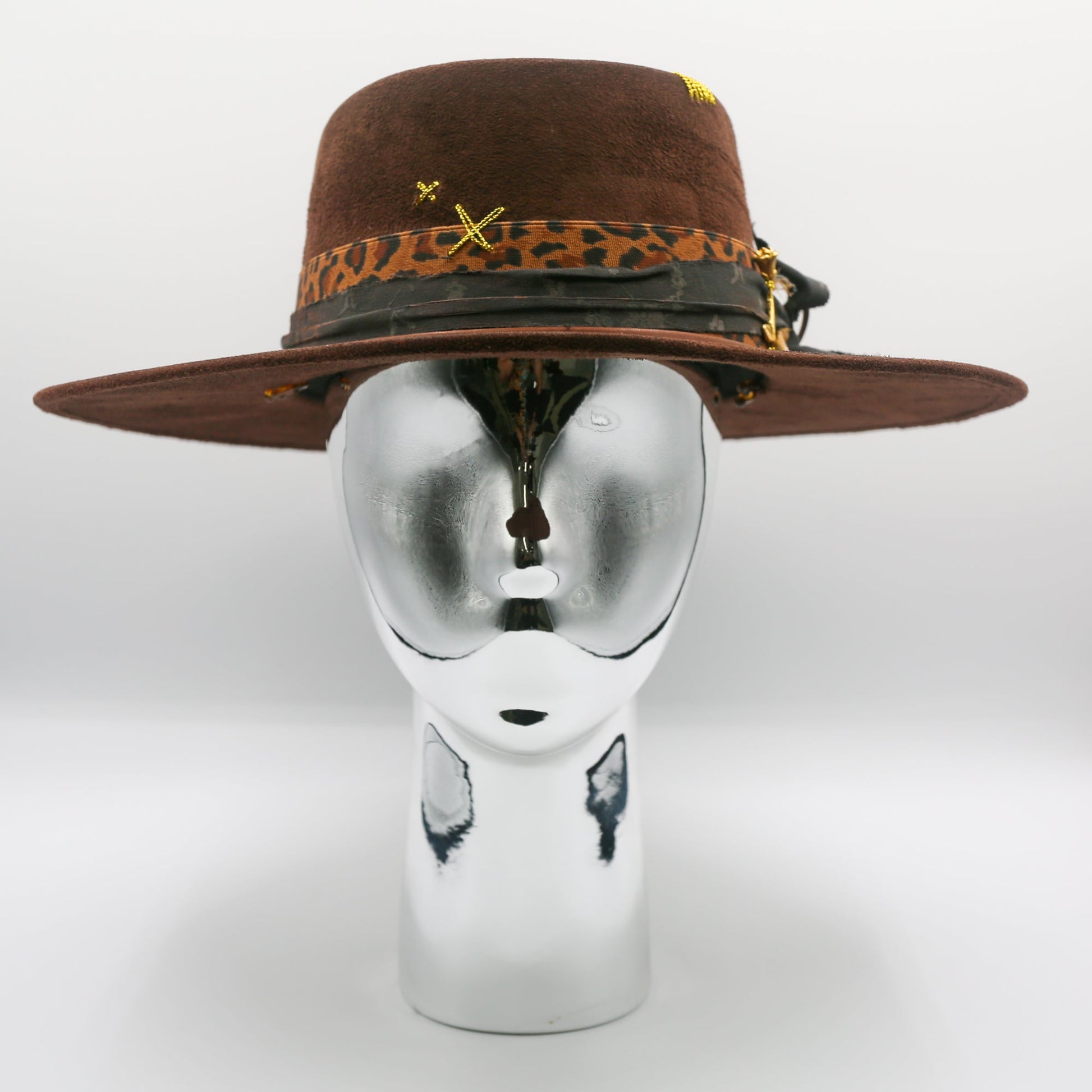 Whether worn at a summer soiree, a fashion event, or an outdoor escapade, this wide brim hat with a feather and leopard band is sure to turn heads and leave a lasting impression.